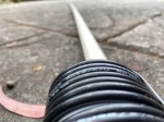 - An inverted L antenna. This worked the best as my local contacts used vertical antennas. I tried to get the vertical part as high and as long as I could before doing that horizontal part. Given the length of the wire needed, most of the wire was still horizontal, but at least the first but was vertical. Though the secret to this antenna was the ground wires. I started with two of them and ran one around the house about 2 feet from the ground. The other was around the fence. I will put at least two more out which should also help improve things.